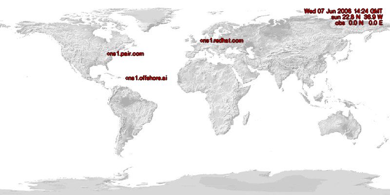 Using the NetGeo-tools from CAIDA and Xplanet to make a guess where the nameservers of all TLDs are located.