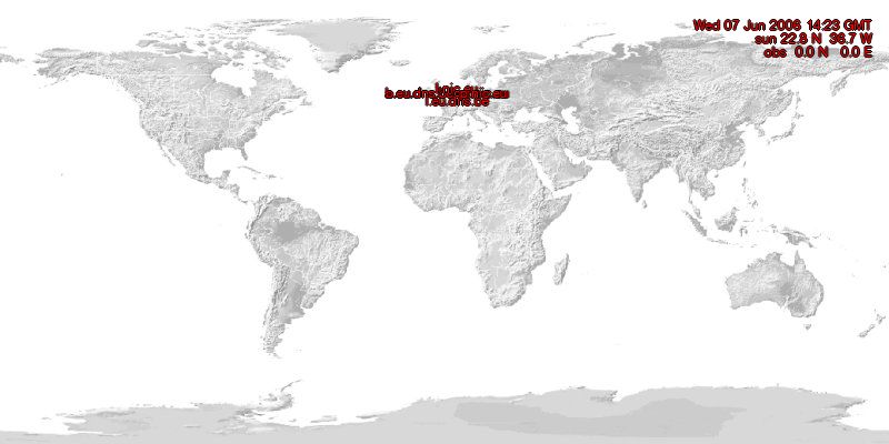 Using the NetGeo-tools from CAIDA and Xplanet to make a guess where the nameservers of all TLDs are located.
