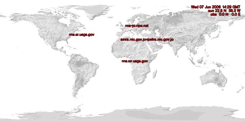 Using the NetGeo-tools from CAIDA and Xplanet to make a guess where the nameservers of all TLDs are located.